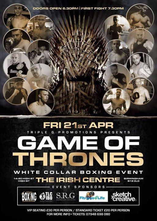 Triple G Promotions had there first show of the year at the Irish centre Digbeth, the show was called A Game of Thrones and consisted of 15 fights with 6 Challenge belts on the line, 3 GGG Promotions belts and the converted Bbcolumn Challenge belt. The Birmingham boxing column were there to review the show and the report on the fights.